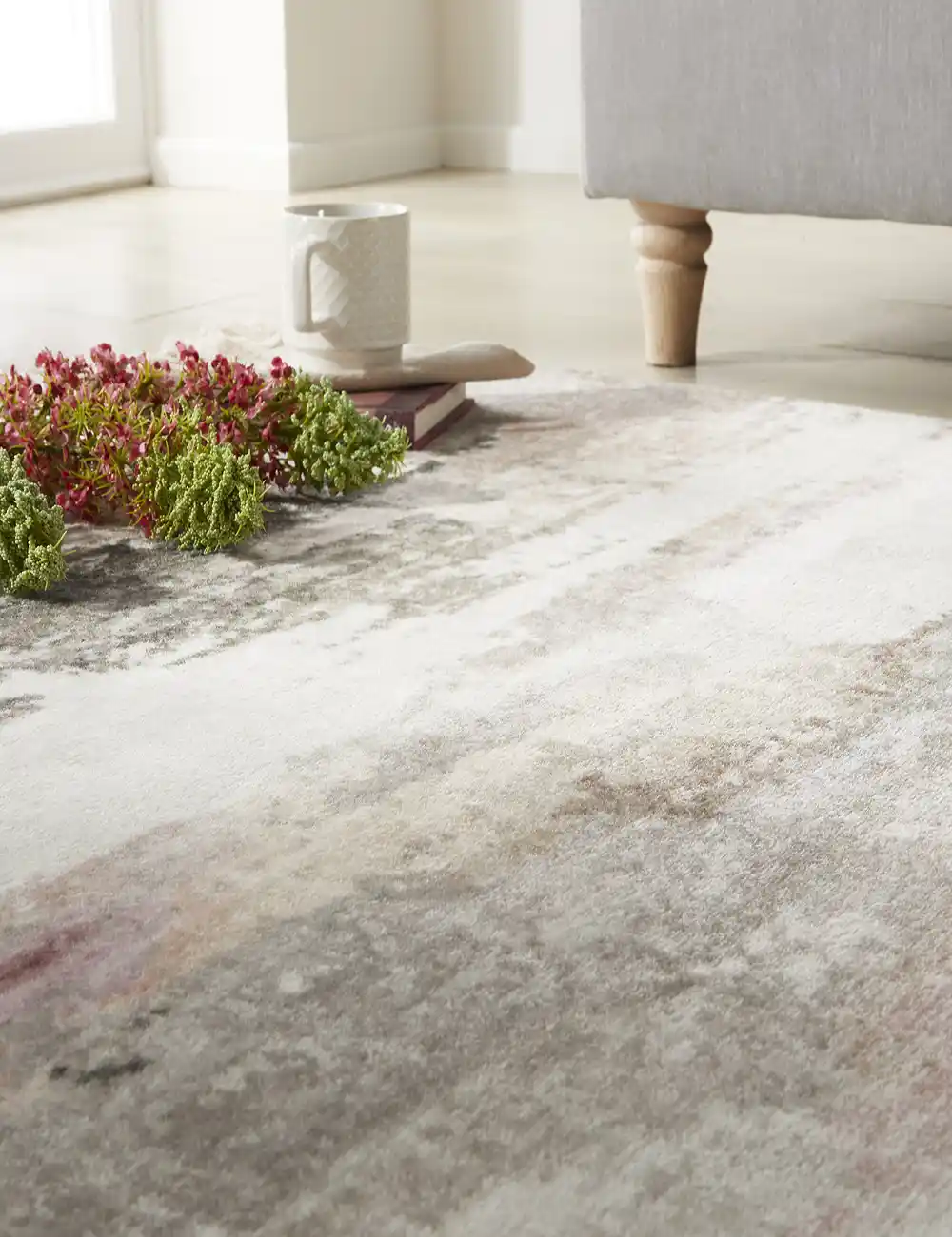 Made from 100% polyester with a comfortable 4mm pile, this rug is machine washable, stain-guarded, and has a non-slip backing for stability.