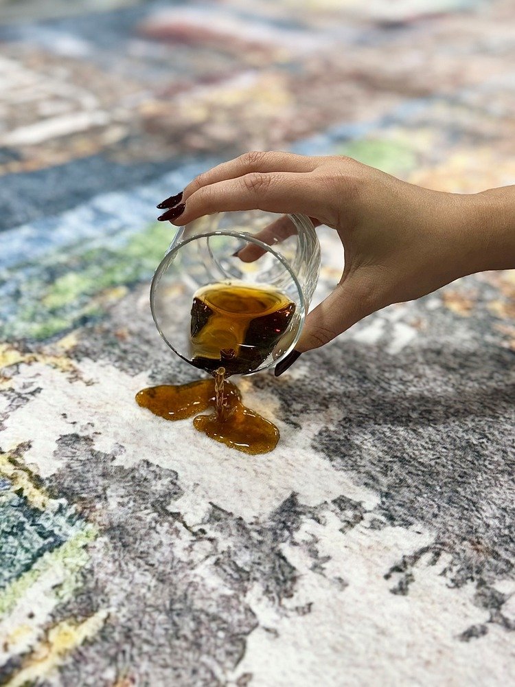 This machine-made rug from the Lux Washable Collection combines abstract artistry with practical design.