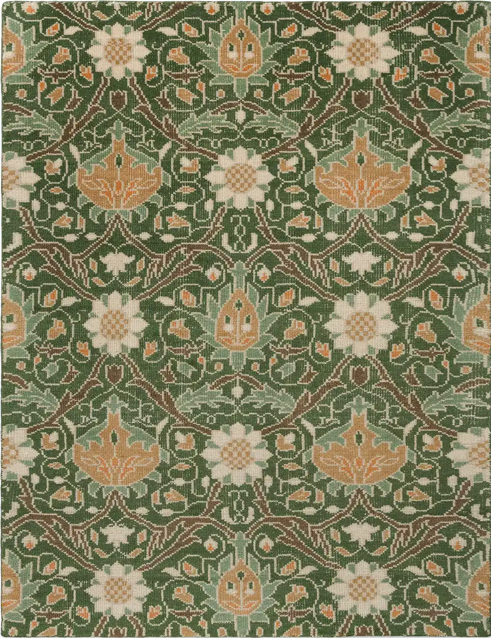 The Montreal Forest rug embraces nature with deep green tones, hand-knotted from pure new wool.