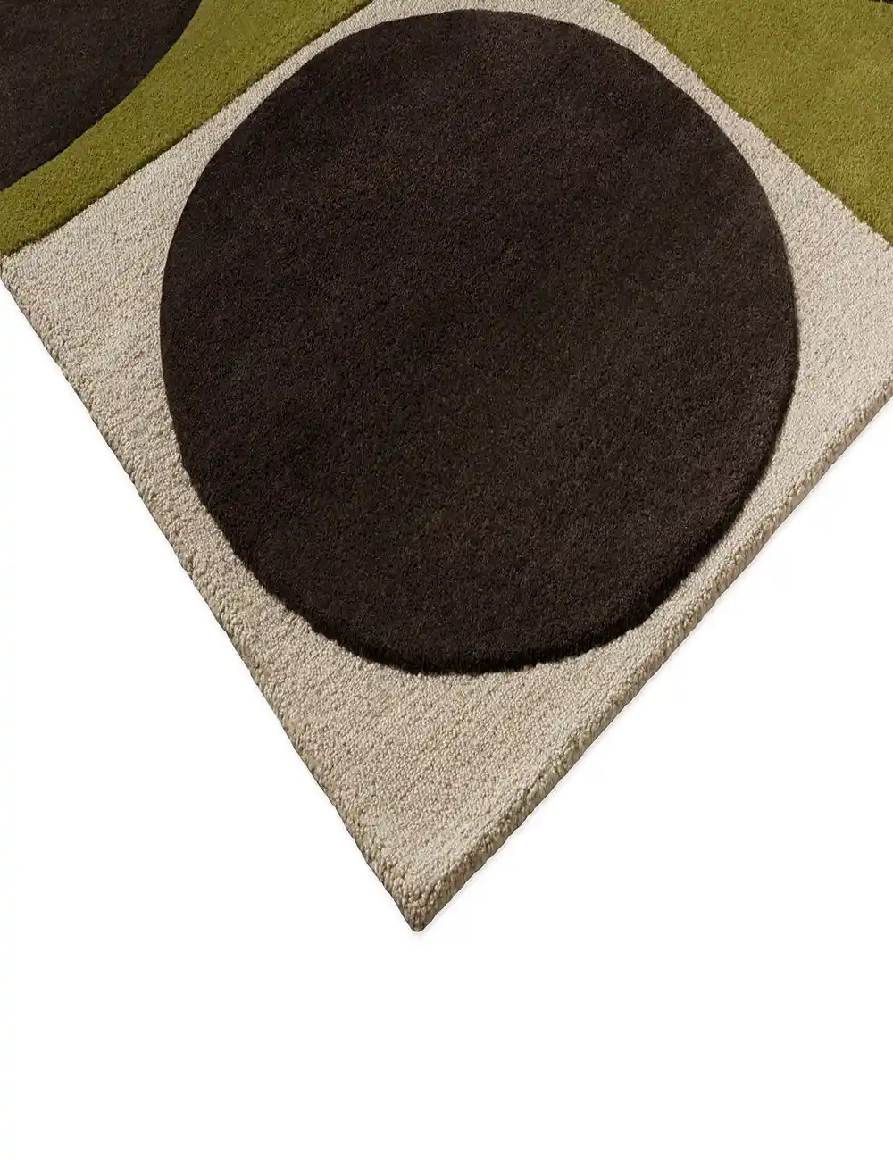 The Spot Square Walnut/Lichen rug reimagines Orla Kiely’s signature geometric patterns in earthy, organic tones.