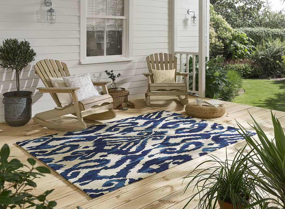 Add a touch of class to your outdoor space with this modern Sanderson rug.