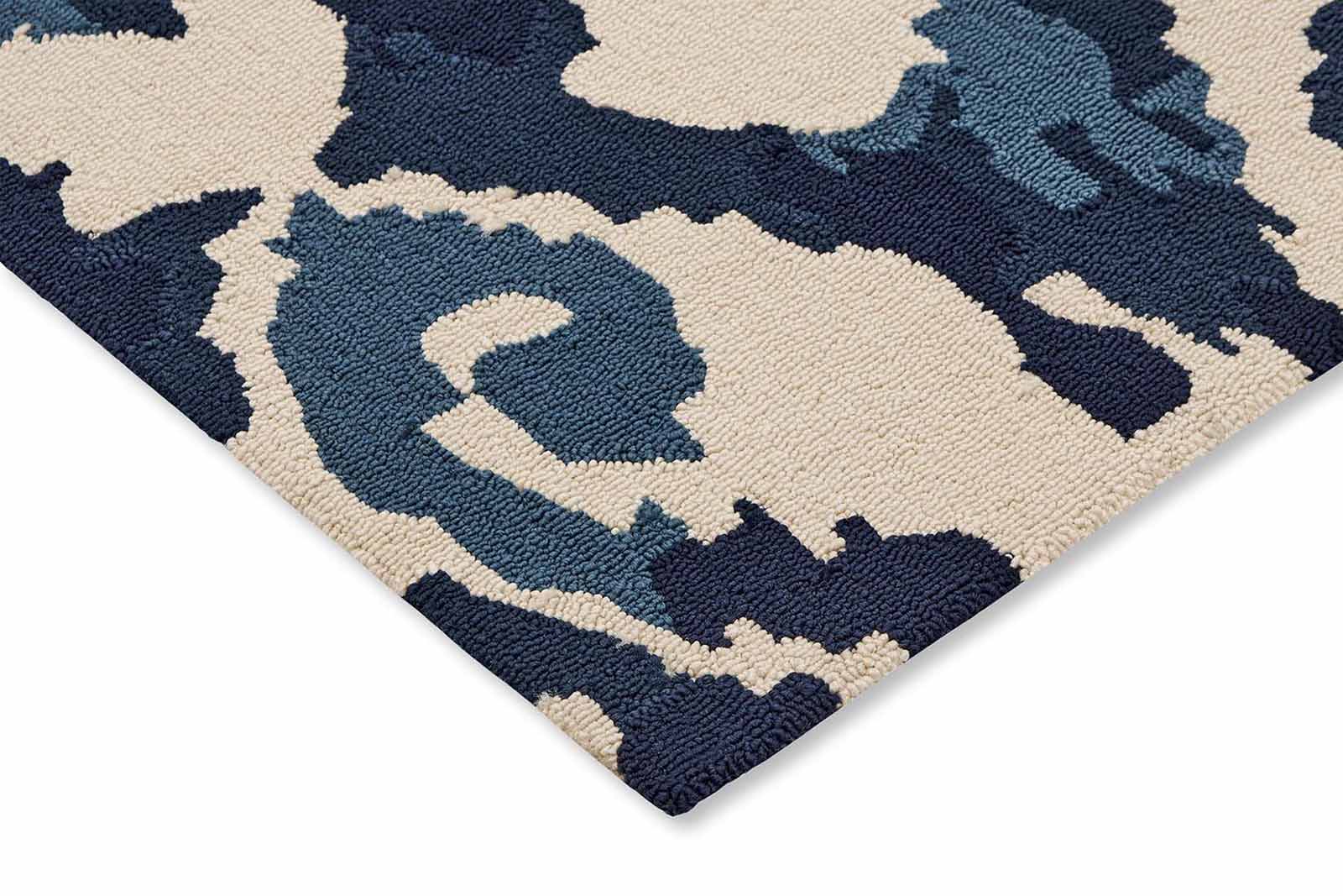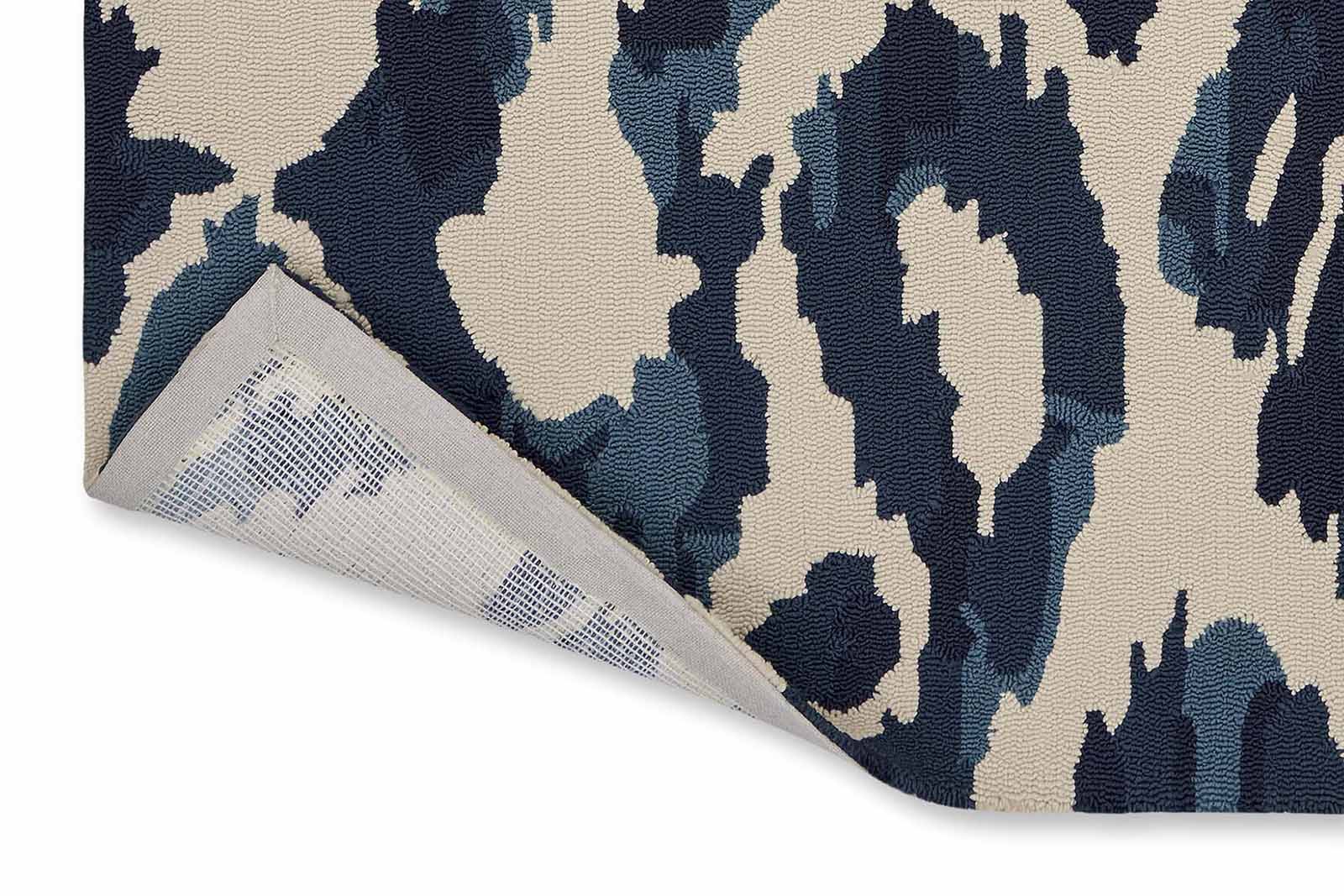 Featuring a stylish motif, combining blue and cream tones, this abstract rug is sure to liven up your garden.