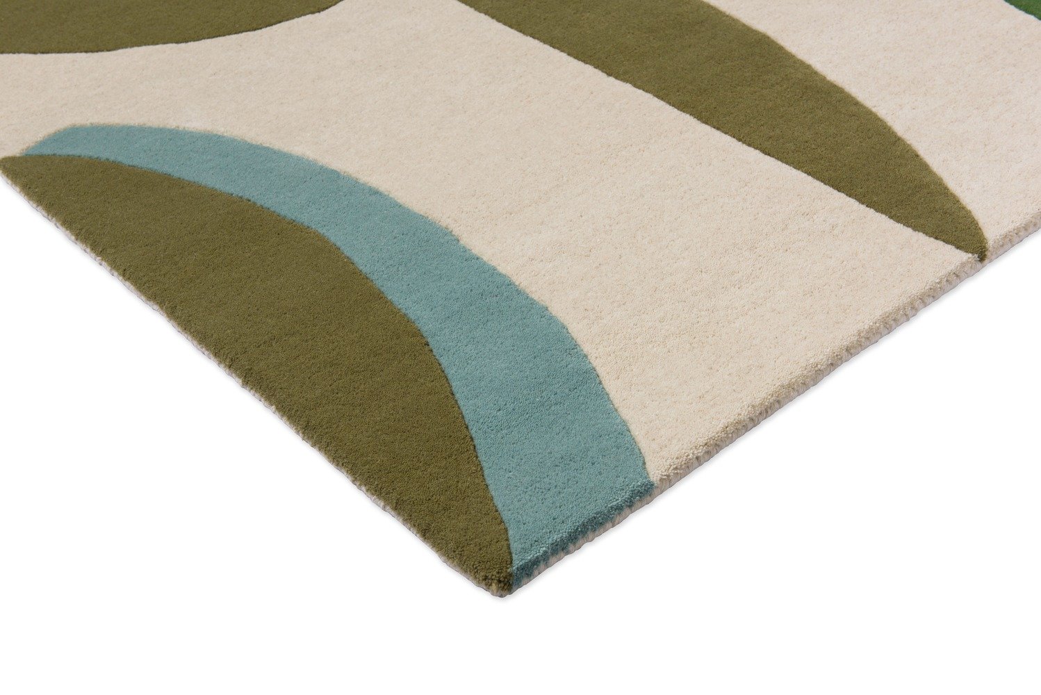 This rug is hand-tufted and made in India. The pile material is pure new wool, and the backing is made of cotton and latex.