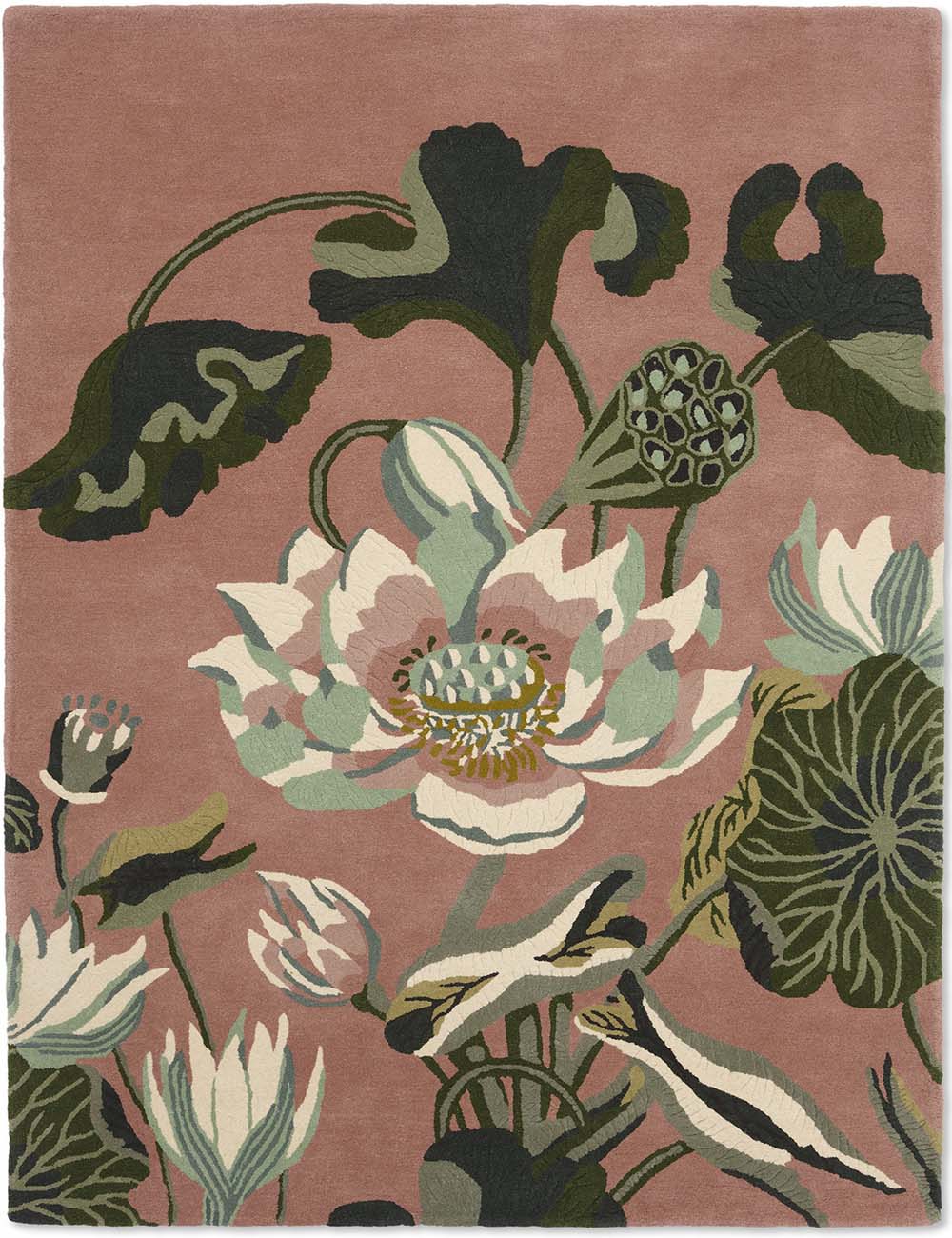 This beautiful area rug is part of the Wedgwood Waterlily collection. Featuring a colourful, floral design on a dusty pink background this striking rug is sure to make a statement wherever you place it.